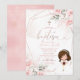 Elegant Pink Floral Cute Girl Christening Baptism Invitation