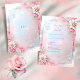This wedding invitation features a delicate floral frame adorned with pink and white blossoms, set against a dreamy pastel background. The soft glow and intricate lace-like details create a romantic and elegant aesthetic. Perfect for designs inspired by feminine charm, weddings, or vintage themes, this piece combines timeless beauty with a modern touch.