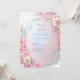 This wedding invitation features a delicate floral frame adorned with pink and white blossoms, set against a dreamy pastel background. The soft glow and intricate lace-like details create a romantic and elegant aesthetic. Perfect for designs inspired by feminine charm, weddings, or vintage themes, this piece combines timeless beauty with a modern touch.