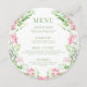 Elegant Pink Floral Garden Wedding Round Flat Menu