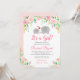 Elegant Pink Floral Girl Elephant Baby Shower Invitation