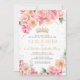 Elegant Pink Floral Gold QR Code Quinceañera Invitation