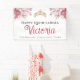 Elegant Pink Floral Happy Birthday Quinceañera Banner