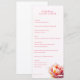 This elegant wedding menu features a vertical layout with a soft pastel colour palette of light pink and white, creating a sophisticated and inviting atmosphere. The design includes clear sections for starters, salad, main course, and dessert, each highlighted by bold headings and clean serif typography. A large, detailed floral illustration adds a touch of realism and elegance to the right side, while ample spacing ensures readability and a structured hierarchy. Perfect for formal events, this menu combines classic style with modern simplicity, making it an ideal choice for couples looking to set a warm and welcoming tone on their special day.