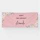 Make a statement with this beautiful, customizable birthday banner! Featuring a chic design of soft watercolor blush pink flowers and delicate green eucalyptus foliage, this banner adds an elegant touch to any birthday celebration, whether indoors or outdoors. Easily personalize the age (e.g., 30th Birthday) and the name of the recipient in a stylish script font. This durable, eye-catching banner is perfect for setting the scene and celebrating a milestone birthday in sophisticated style. Available in various sizes to fit any party venue.