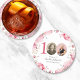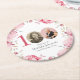 Elegant Pink Floral Photo 100th Birthday Party Round Paper Coaster