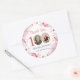 Elegant Pink Floral Photo 100th Birthday Thank You Classic Round Sticker