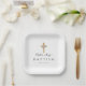 Elegant Pink Floral Religious Cross Baptism Paper Plate