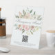 Elegant Pink Floral Wedding Honeymoon Fund QR Code Pedestal Sign