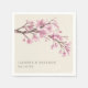 Elegant floral wedding napkin featuring a branch consisting of watercolor painted pink cherry blossom flowers and your names and date below, over an ivory background. Your details are in a deep brown colour in left alignment. These chic napkins are a great way add a personal touch to your reception, engagement party or rehearsal dinner and are perfect for a celebration in the spring.