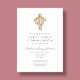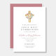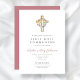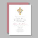 Elegant Pink Floral Wreath Cross First Communion Invitation
