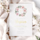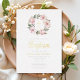 Elegant Pink Floral Wreath Girl Baptism Gold Foil Invitation.