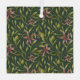 Seamless pattern featuring pink flowers and green leaves on a dark background. The arrangement is symmetrical, evoking a natural, elegant feel.