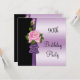 Elegant Pink Flower & Purple Ribbon 90th Birthday Invitation