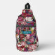 Elegant pink flowers red pattern monogram printed sling bag