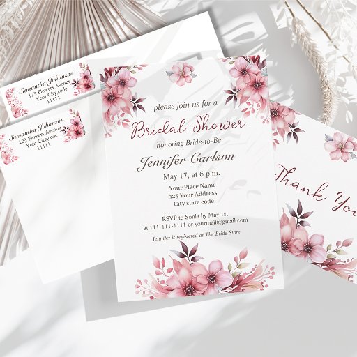 Beautiful blush pink flowers. Elegant thank you card for bridal shower and other occasions. The texts are fully editable.