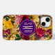 Elegant pink flowers yellow monogram Case-Mate iPhone case