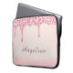 Elegant Pink Glam Glitter Drip Lace Bridal Shower Laptop Sleeve