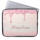 Carry your tech in style with this elegant pink glam glitter drip lace bridal shower laptop sleeve. The design features cascading faux pink glitter drips over a soft, glowing background with dewy shimmer accents for a luxe, modern finish. A subtle lace detail along the bottom adds a touch of feminine charm. Perfect for school, work, or everyday glam, this sleeve can be personalised with a first name—making it a thoughtful gift for birthdays, back-to-school, or stylish home office upgrades.