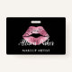 Elegant Pink Glitter Kiss Makeup Artist ID Badge