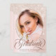 Invite your friends and family to your college graduation celebration in style with this elegant photo graduation announcement and party invitation. This elegant template design features a photo for you to change to your own framed in faux blush pink dripping glitter. Below your photo it reads "Graduate" in dusty rose script typography with your name, college and year to personalise. The back of the card has all your party details to customise accented by a faux gold graduation cap. Designed by Susan Coffey.