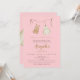 Celebrate your little one’s blessing with this sweet and sophisticated Aqiqah invitation. Featuring a delicate pink pastel background, gold-toned typography, and a charming illustration of hanging baby clothes. Fully customizable for your daughter's special day.