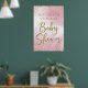Pink and gold baby shower welcome sign with pretty gold letters on a pink and gold glitter background. This pink and gold baby shower welcome sign is easily customised for your event by simply adding your details. You can also remove the satin background and add the colour for your choice.