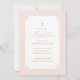 Invite family and friends to celebrate a baptism with this elegant invitation, featuring a blush pink background and gold typography.