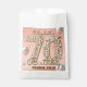 Celebrate a glamorous milestone seventieth birthday with these elegant pink and gold party favor bags. The beautiful design features a soft blush pink background decorated with luxurious 3D pearl numbers outlined in gold. Accented with festive silver balloons and delicate gold confetti, these stylish treat bags are the perfect way to package small gifts, candies, or thank you favors for your party guests. Easily edit the name to create a memorable and unique keepsake for a woman's special 70th birthday celebration.