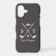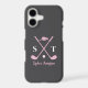 Looking for a stylish personalized iphone case for women that doesn’t get lost or look boring? This chic design features bright pink golf clubs with white bows, a matching golf hat, and a crisp white golf ball on an elegant gray background. Customize it with your initials and full name for a polished, personal touch.