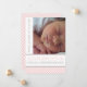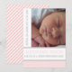 Elegant and stylish pink, grey striped simple baby girl birth announcement featuring striped pattern with light pink and white stripes, your baby’s birth details on a white band with grey outline and the baby’s photo. This modern customisable template design is great for announcing your baby’s girl birth.