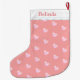Beautiful and elegant pink heart pattern on pink background personalised stocking. Merry Christmas!