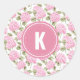 Elegant Pink Hydragea Flowers Pattern Monogram Classic Round Sticker