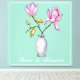 A delicate watercolor illustration of two blooming pink magnolia flowers in a transparent glass vase. This elegant botanical artwork brings a touch of timeless nature to any interior. Perfect for prints, home decor, stationery, and gifts for flower lovers and art enthusiasts.