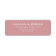 This label features a clean, minimalist design with centered text on a soft pink background. The elegant serif font adds a touch of sophistication, making it perfect for formal occasions. Its simple layout focuses solely on the essential information, ensuring clarity and readability while maintaining an approachable yet refined aesthetic. Ideal for weddings or special events, this label combines timeless style with practical functionality.