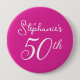 Elegant Pink Monogram 50th Birthday Party Button Pin