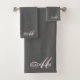 Elegant Pink Monogram Script Initial Name Grey Bath Towel Set
