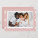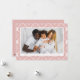 Festive holiday card showcasing your horizontal photo framed in white, set against a pink and white Nordic snowflake patterned background. Personalize this cheerful Christmas card with your custom greeting and family name in matching pink lettering. The back of the card provides space to share your personal holiday message.