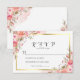 Elegant Pink Peach Floral Watercolor Gold RSVP Card