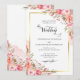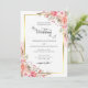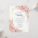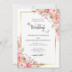Elegant Pink Peach Floral Watercolor Wedding Gold Invitation