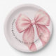 Elegant Pink Pearl Bow Baby Shower Paper Plate