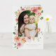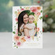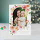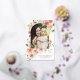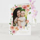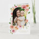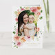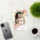 Elegant, floral Mother's day greeting card featuring your photo displayed inside of an arch framed by pink watercolor peonies, roses, dahlias, and hydrangeas with vibrant green leaves. Personalise the front of the card with your custom greeting and name(s) in gold foil lettering. The inside of the pink peony Mother's Day card displays an additional photo with space for a typed or handwritten message.