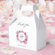 This design features elegant pink peony flowers. The floral pink peonies create a wreath frame around the wedding date. The pink tones of the peony flowers and its greenery create an elegant rustic floral country garden feel. Elegant wedding favour box design with modern elements. Matching wedding invitations and other stationery items are also available.
