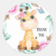 Elegant Pink Peony and a Cute Giraffe Thank You Classic Round Sticker