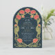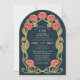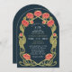 Capture timeless elegance with this Art Nouveau-inspired invitation! Featuring pink peonies, leaves against a blue background, this design sets the tone for a sophisticated celebration. Perfect for weddings, galas, and milestone events! Please note that the gold on this product is NOT real foil; it is printed flat.