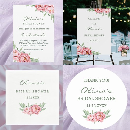 Personalise this Elegant Dusty Pink Peony Invitation and add a Feminine, Floral touch to your Bridal Shower. The Pretty Light Pink and Dark Pink Watercolor Flowers and Greenery against a Crisp White background, will give a Soft, Light feel to your Bridal Shower Party or Picnic.