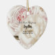 Enhance your tree with a sophisticated ornament that celebrates your first Christmas as a newlywed couple. Your first Christmas together. This exquisite pink ornament boasts a captivating dreamy, peony floral backdrop. It includes an area for personalising with your names and wedding date or other information creating a cherished Christmas memento to treasure for years ahead. The backside of ornament has the same romantic pink and ivory peonies.