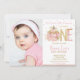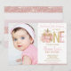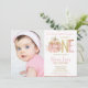 Elegant Pink Pumpkin 1st Birthday One Girl Photo Invitation