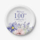 Elegant Pink Purple Floral 100th Birthday Party Paper Plate