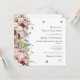 Elegant and sweet, this square baby shower invitation features a lovely design of watercolor pink and purple flowers including roses, tulips, lavender and eucalyptus greenery with bright coloured butterflies and bumble bees flying around.